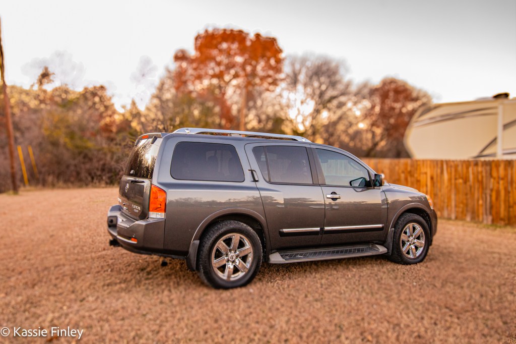 The 2012 Nissan Armada certainly has the goods for towing and hauling. The Armada’s standard 317-horsepower 5.6-liter V8 produces strong acceleration with 385 pound-feet of torque. It can tow up to 9,100lb when properly equipped.