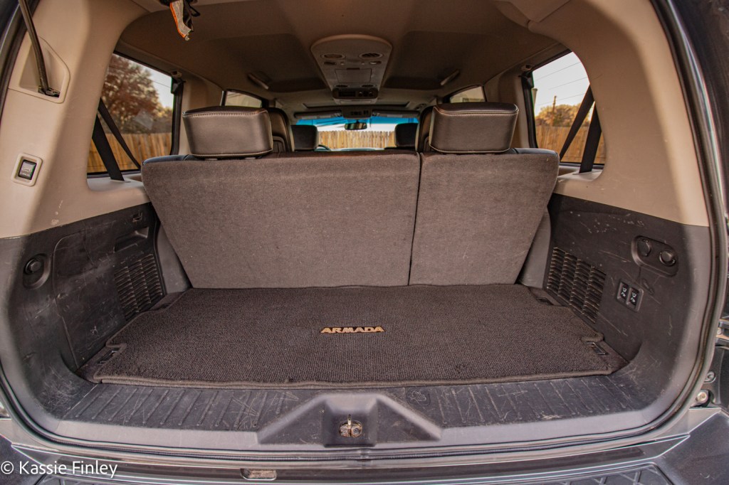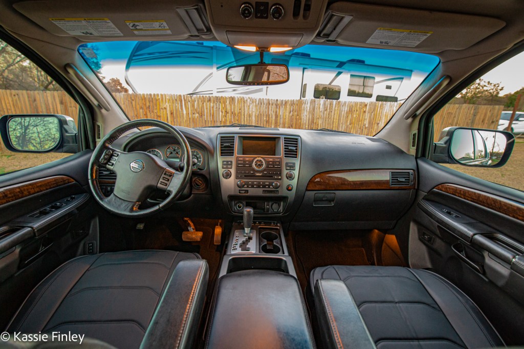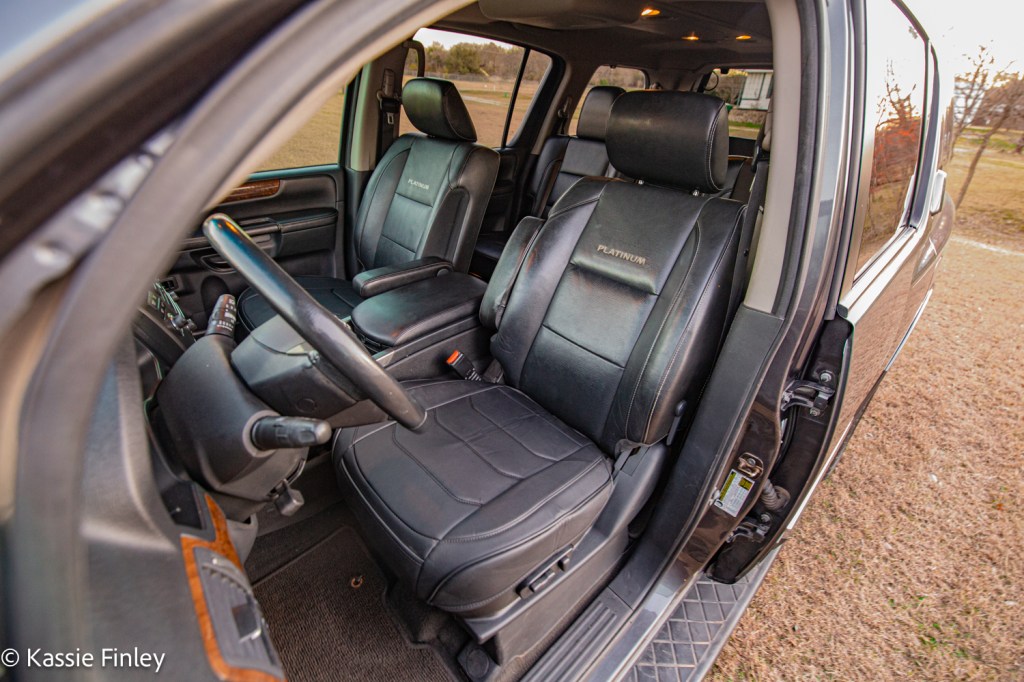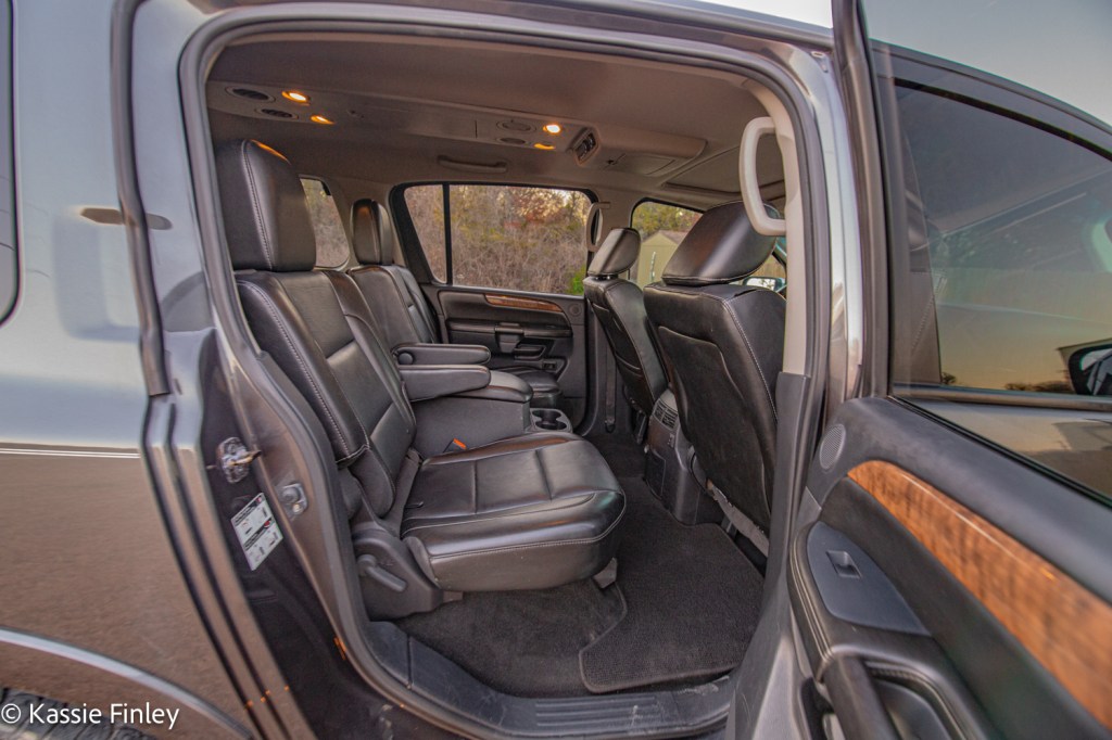 Inside the cabin you’ll find a handsome space done up in high-quality materials. The Armada’s front seats are large and supportive, with good head- and legroom. It’s high ratings are well deserved.