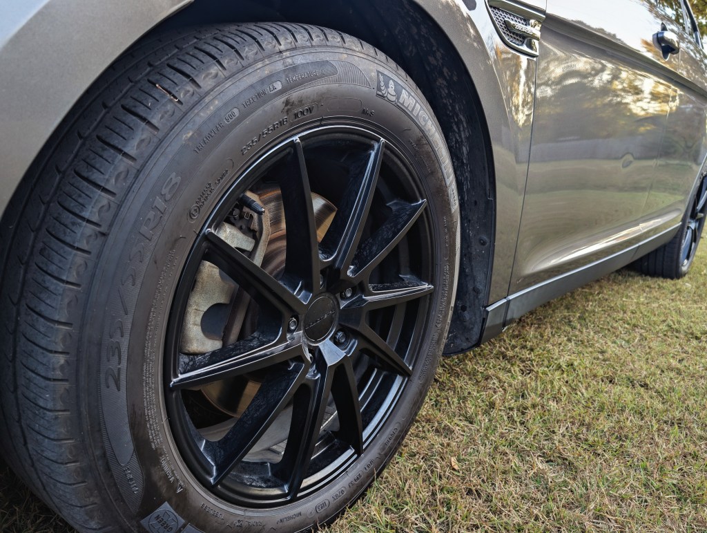 - Black aftermarket wheels